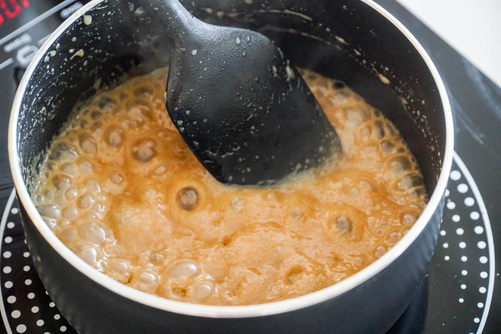 Add condensed milk in a saucepan over low heat. Stir continuously until it turns into a caramel color.