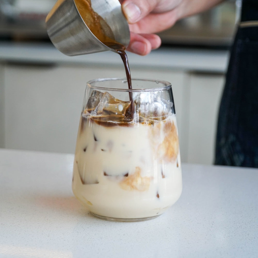 Brew a shot of Sitio San Roque Fine Robusta and pour into your glass.