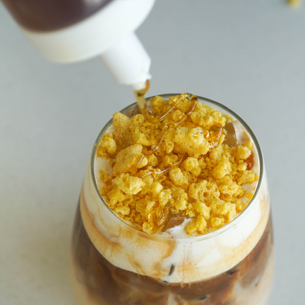 The Cereal Crunch Honey Latte is our signature beverage made with Fine Robusta beans from Sitio San Roque, featuring notes of baker’s chocolate, toasted cereal, and chocolate wafers. This latte comes together with a layer of fluffy sea salt cream and crumbled Honey Stars for added crunch. The first sip of this drink will surely wake you up and kick-start your day.