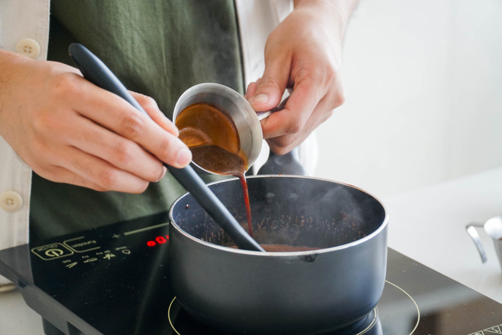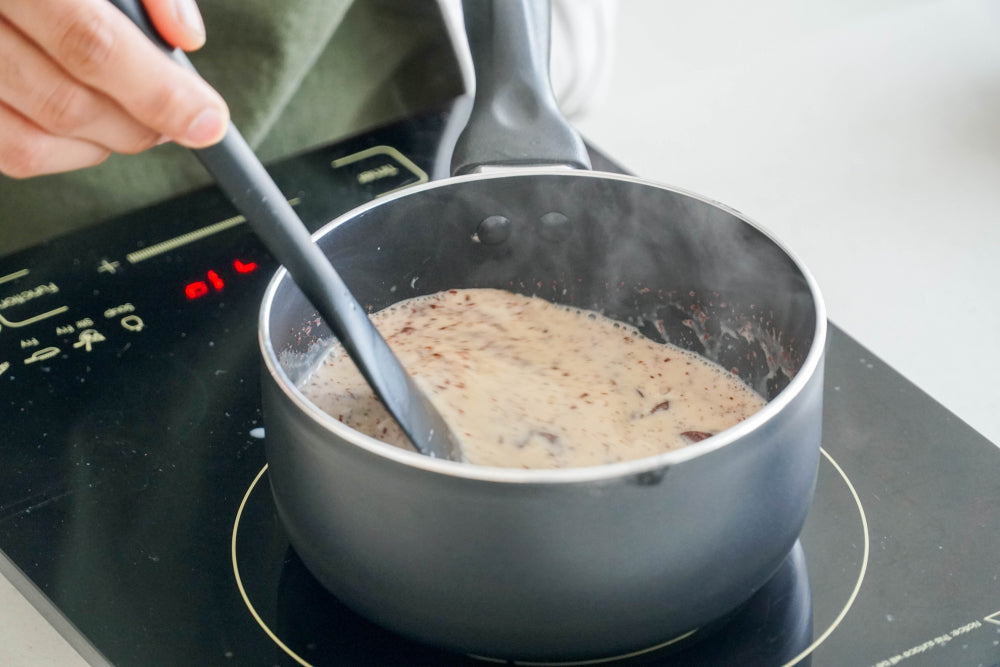 Pour espresso shots in the saucepan and stir until well incorporated. This will be your mocha mix.