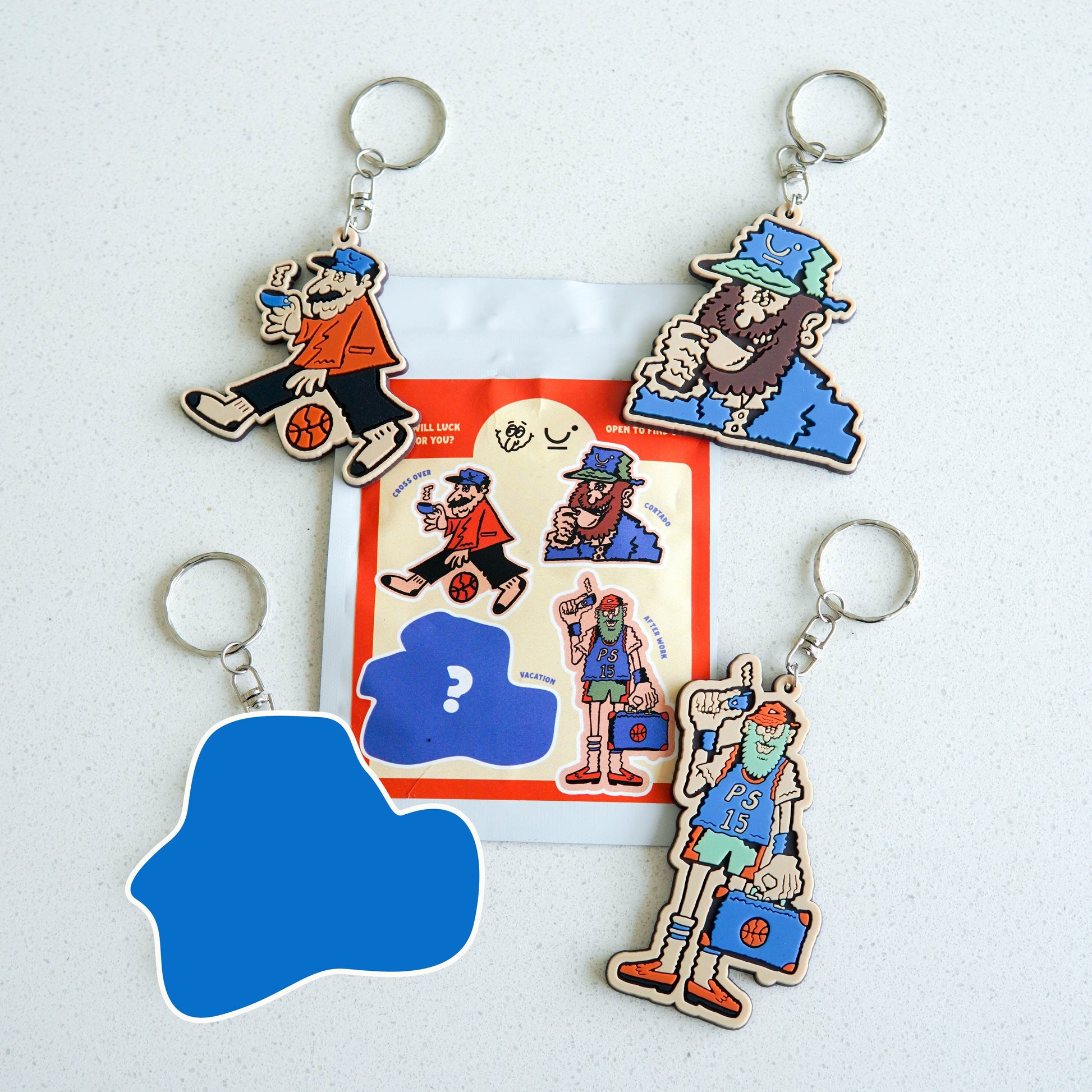 Open the blind keychain pack and receive a random Off The Bench rubber keychain, made in collaboration with designer and illustrator Jethro Olba. Each piece is 3 mm in thickness and 2 to 3.5 inches wide, depending on the design. If luck’s on your side, then you’ll score the rare Vacation keychain! Collect all four to get the full squad off the bench.